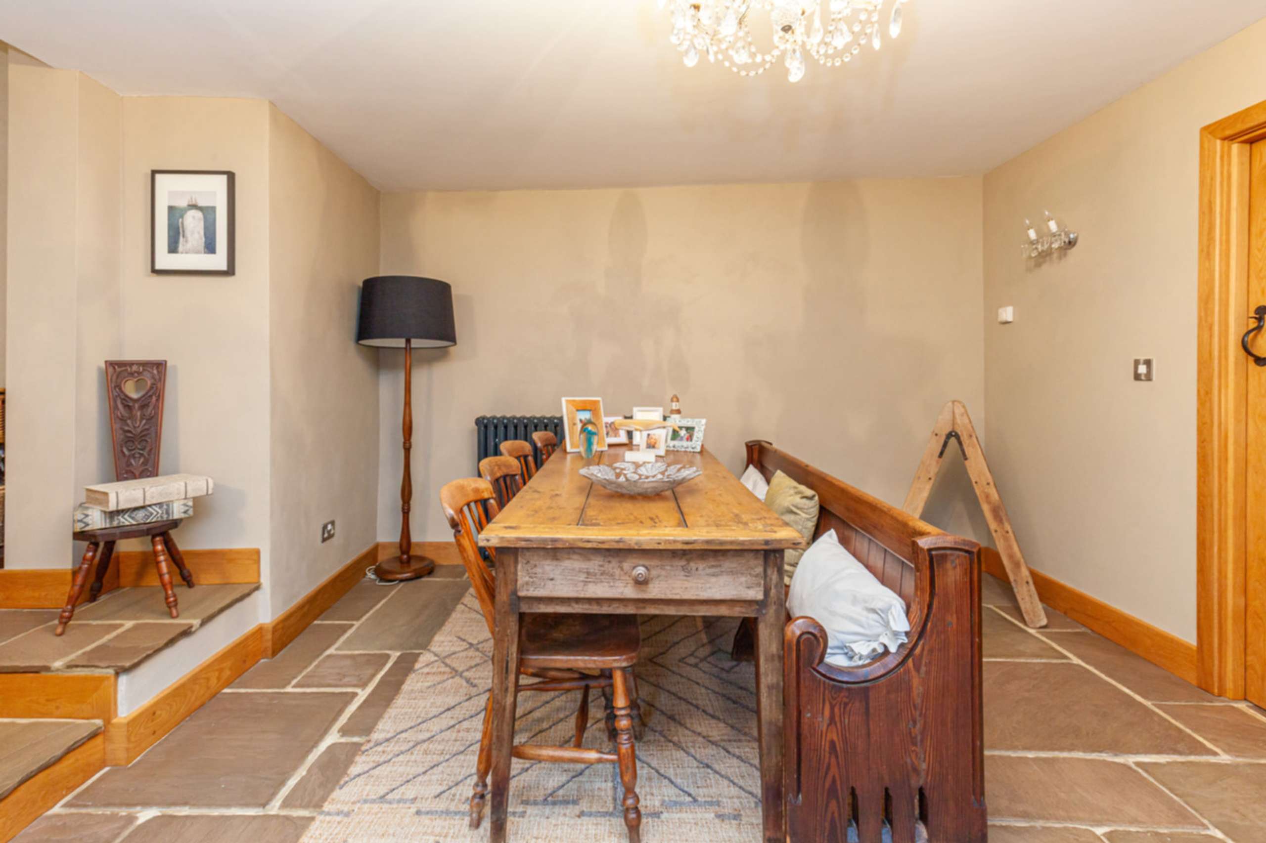 • Open-Plan Living – Flagstone flooring throughout living and dining areas with a charming inglenook fireplace