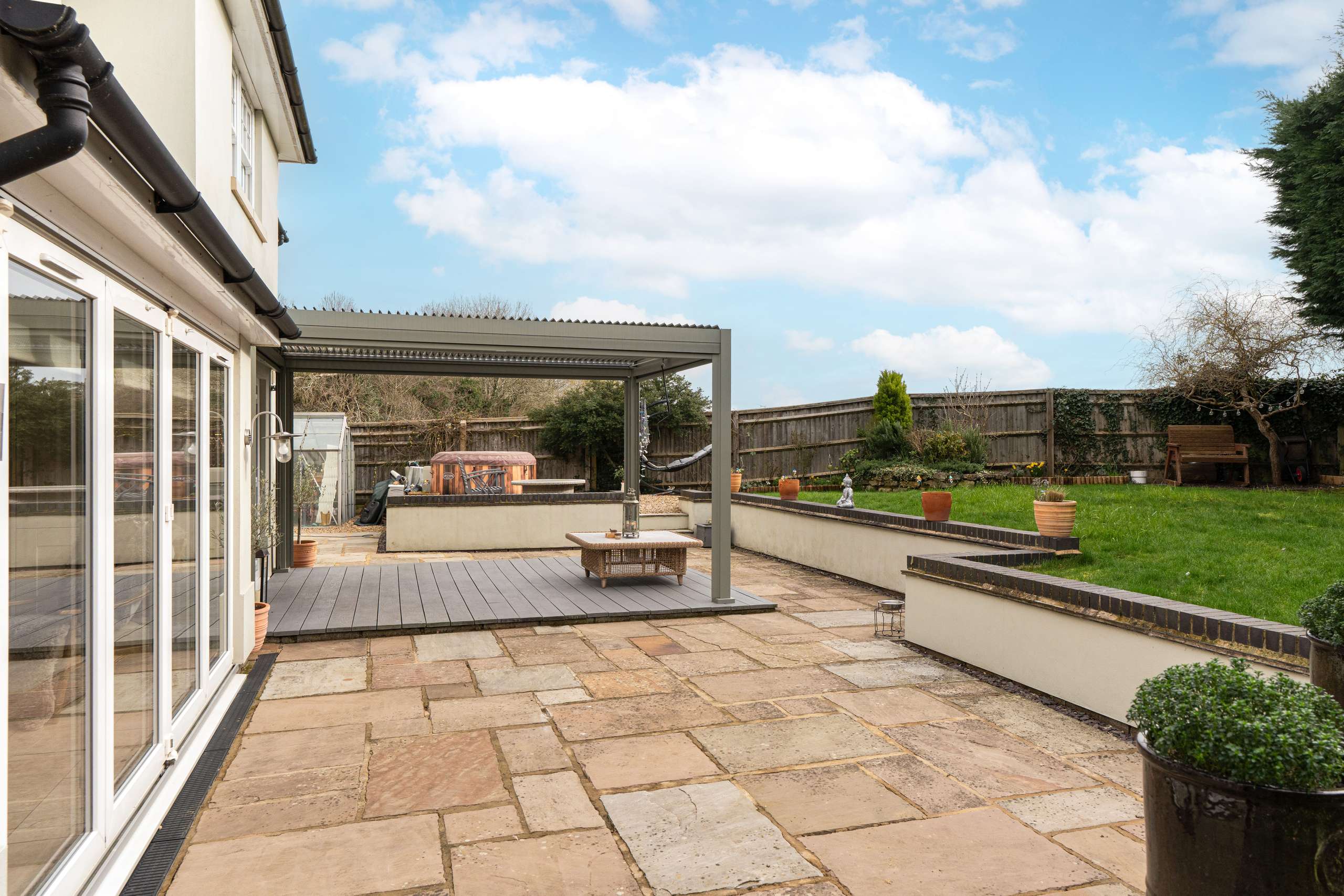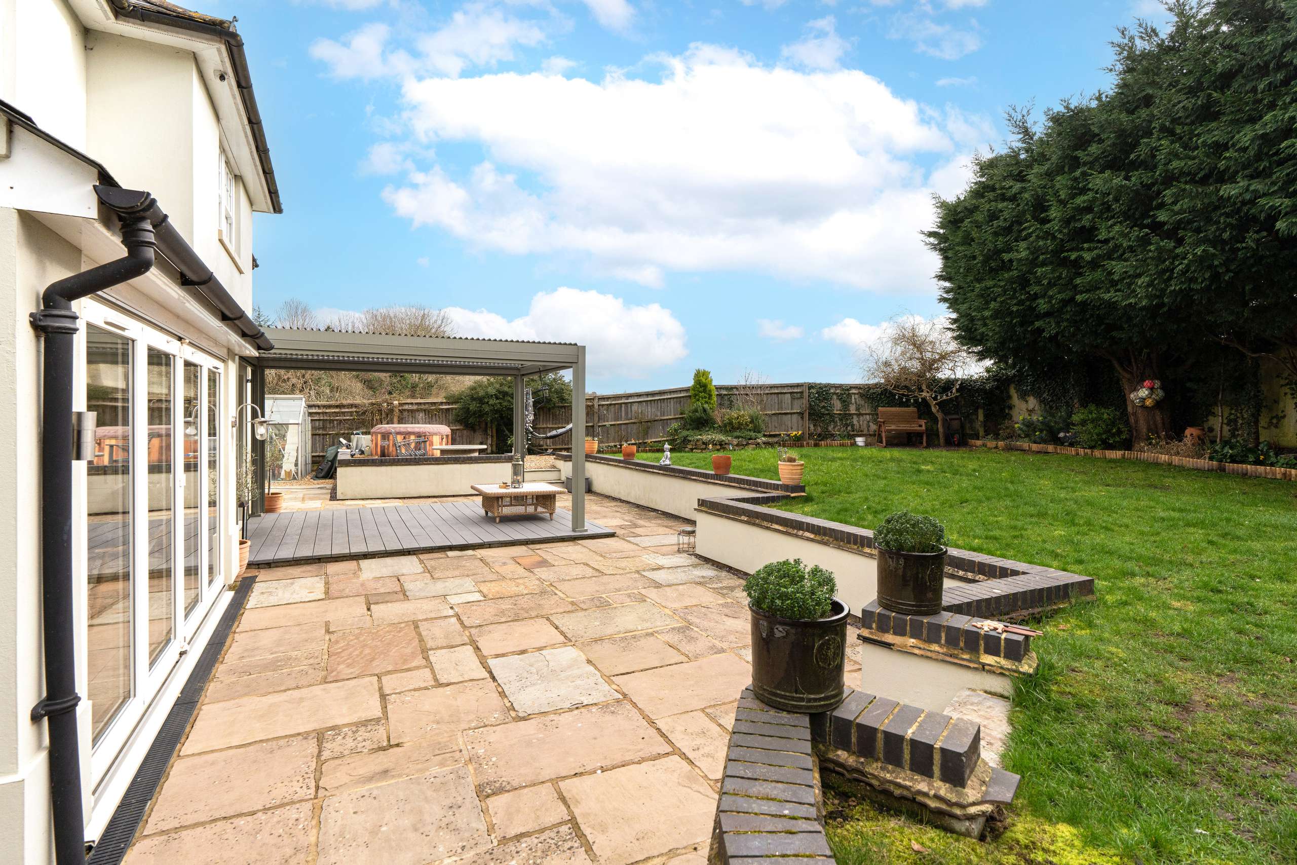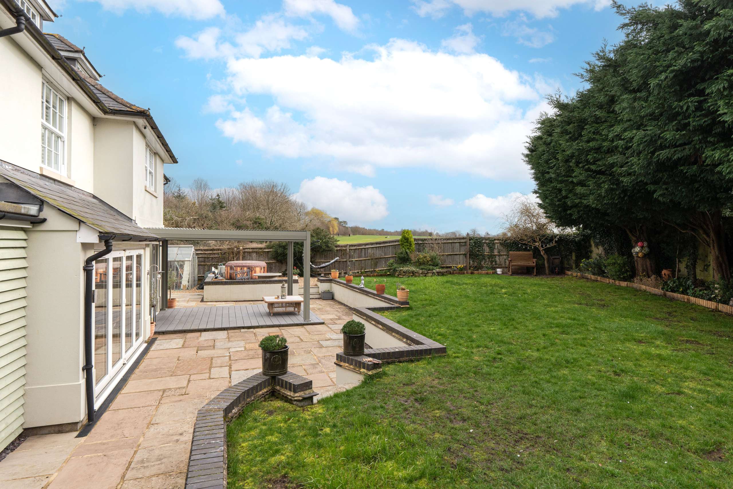 - Generous garden plot with lawn, patios and well-stocked borders, neighbouring open countryside