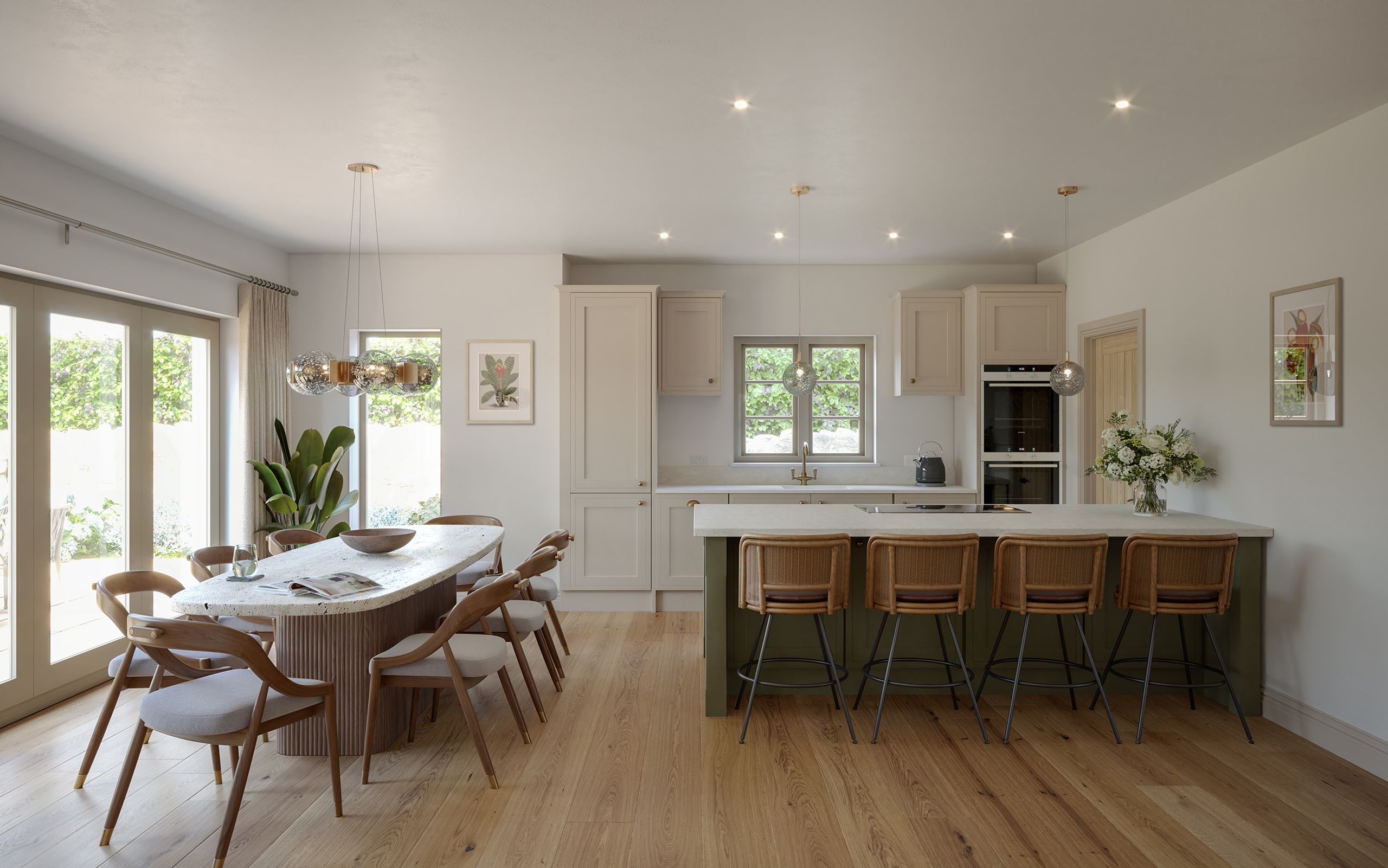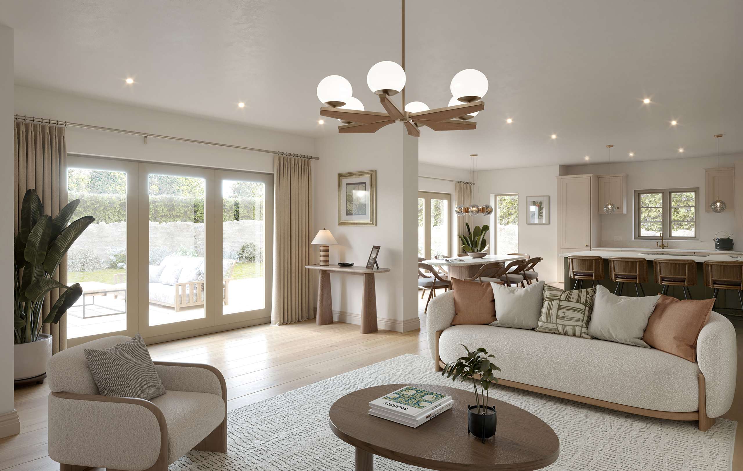 • Open plan kitchen, dining room and living room with two sets of bi-fold doors out to your patio area and a wood burning stove