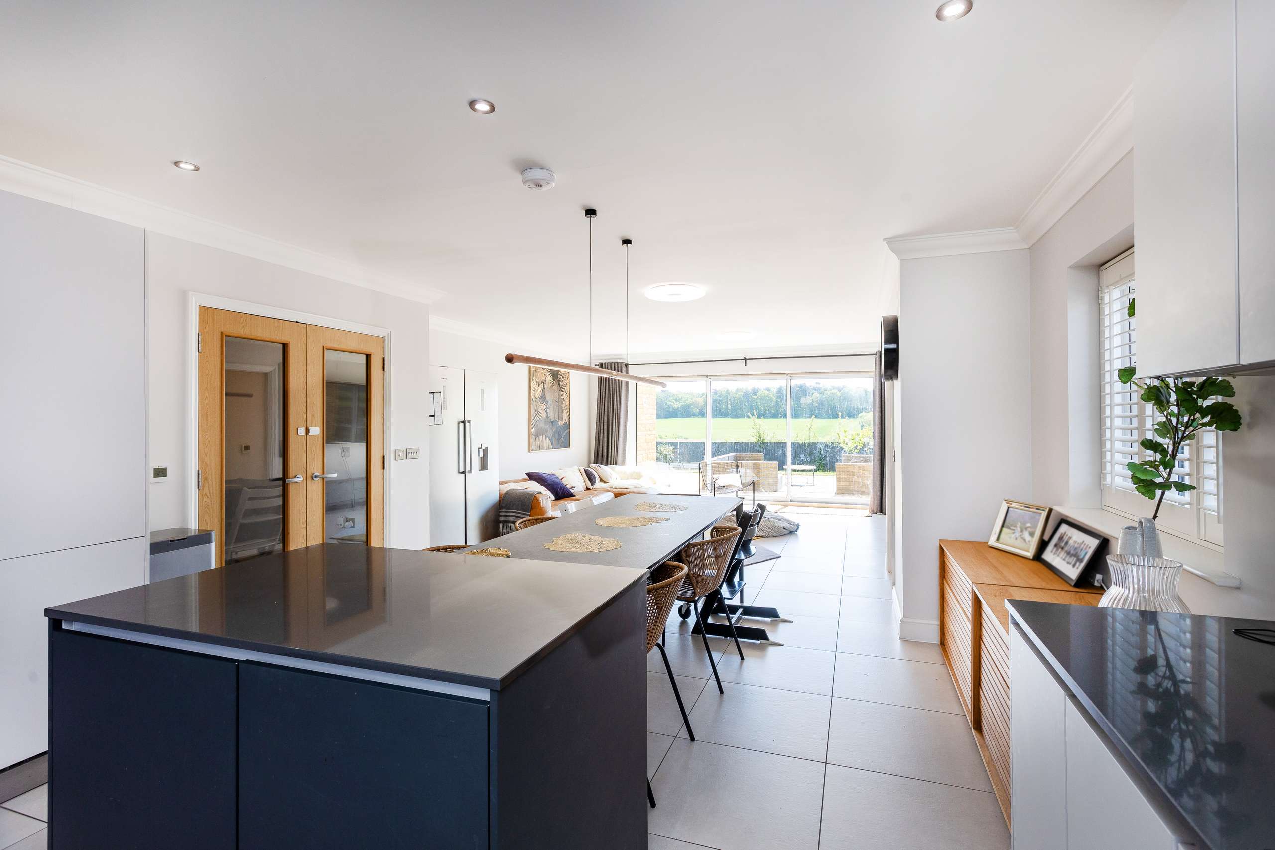 - Striking double aspect kitchen/dining/family room with bifold doors leading on to the southerly facing terrace, perfect for entertaining and family life alike.