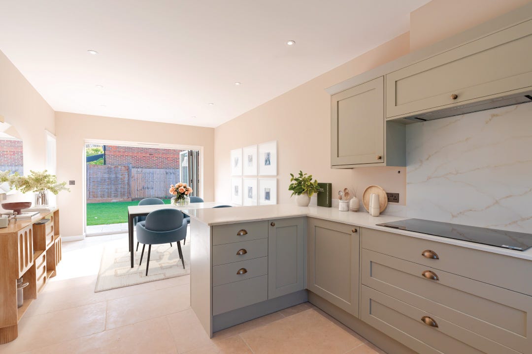 Inside, open-plan kitchens with statement islands and integrated appliances flow naturally into bright dining and living spaces, many with bi-fold or French doors opening onto private landscaped gardens. Principal bedrooms feature fitted wardrobes and elegant en-suites, while studies, utility rooms, and double garages add thoughtful practicality.